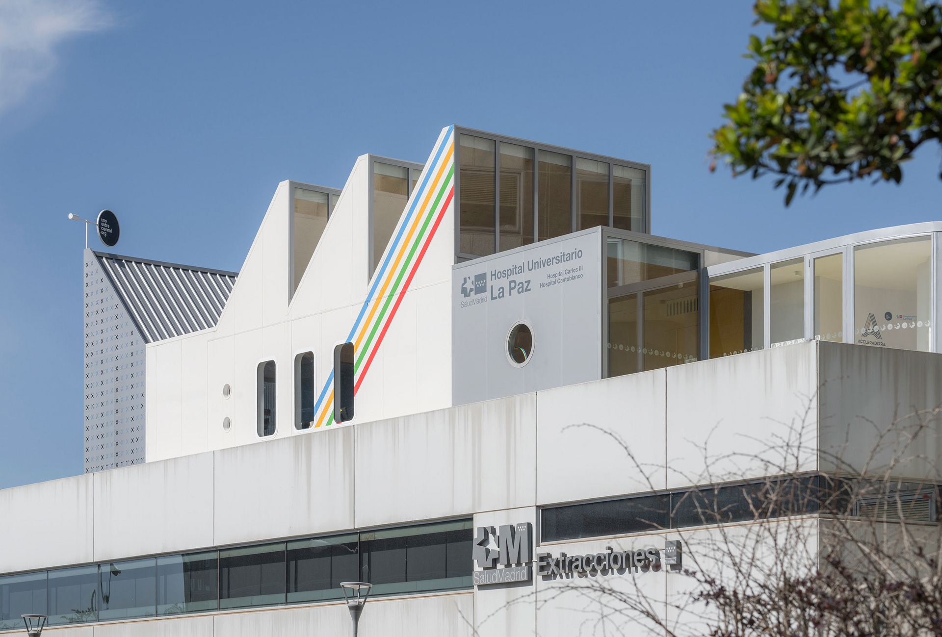 The Aceleradora is located on the roof of La Paz Hospital, next to the main entrance and connected to the maternity and infant tower. It is an outdoor space but at the same time a new interior that incorporates techniques and imaginaries favourable to recovery. Patients can leave for a moment the rigid temporal and spatial protocols and the monotony of the main building, to enter a place with an alternative spatial and material organisation.