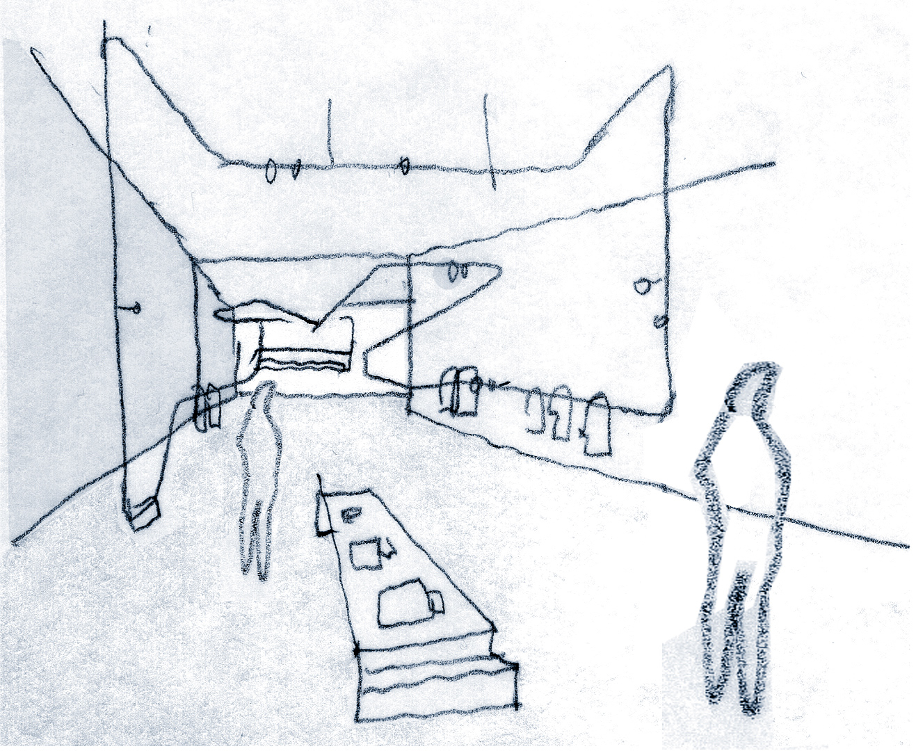A single element has been used in this project, a micro-infrastructure that implements displays, special lighting and other facilities, in the form of a floating space drawing.
