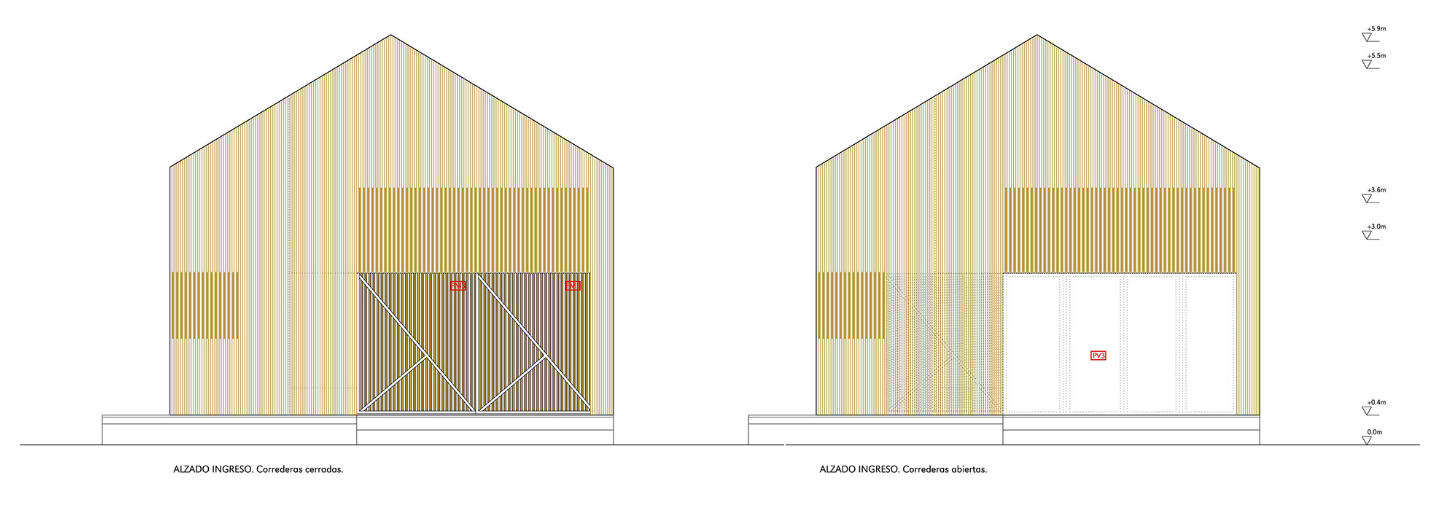 La vivienda se habilita con tres cajas de madera, dos exteriores: el porche y la conexión al baño, y una interior, que contiene la cocina y un dormitorio en planta baja y un altillo sobre estas piezas.
